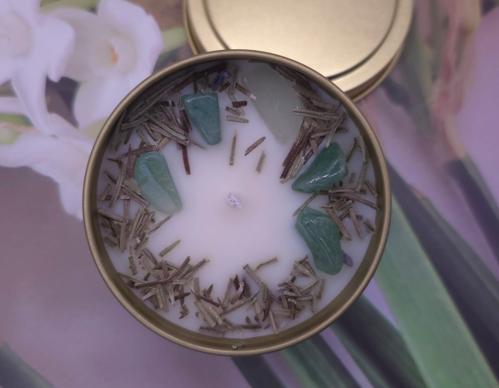 Tauchen Sie ein in eine Atmosphäre des Gleichgewichts und positiver Energie mit unserer handgemachten "Mystic Balance"-Kerze, sorgfältig hergestellt aus Soja- und Kokoswachs und angereichert mit den bezaubernden Düften von Ylang-Ylang und Patchouli. Diese einzigartige Kombination, zusammen mit Aventurinquarz und dem reinigenden Rosmarin, verwandelt Ihren Raum in einen Zufluchtsort voller Ruhe und Fülle.