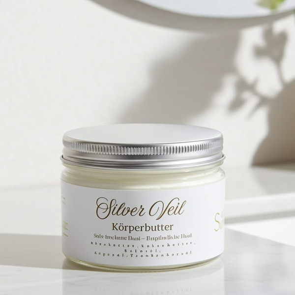 Wie ein zarter, silberner Schleier legt sich Silver Veil über deine Haut – cremig, schützend und himmlisch duftend. Diese handgemachte Körperbutter vereint reichhaltige Pflege mit einer sinnlichen Leichtigkeit, die Körper und Geist umhüllt.